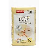 Fisher-Price Happy Days Diapers provide mom and baby premium protection without the premium price. Premium features include a Total Stretch TM waistband and SizeRight TM fit indicator to ensure a perfect, comfortable fit every time. Flexible leg cuffs help to maintain a snug fit during playtime. Ultra soft, hypoallergenic and fragrance free materials are gentle on baby's skin. An umbilical cord cut out prevents irritation during those early weeks of life. Cute animal graphics provide playful cues to make changing time fun.